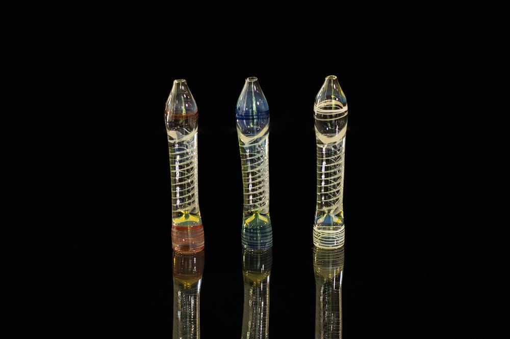 Crafted from dichroic glass throughout the entire pipe and accented with various colored glass details inside the tubing, these glass chillums showcase exquisite design. Constructed from thick borosilicate glass, these chillum pipes offer a convenient and portable option for on-the-go toking. The designs and patterns will vary based on availability. Given that each pipe is a handmade work of art, the exact colors and design may slightly differ. The glass piece is adorned with stunning dichroic glass, characterized by colored glass with embedded sparkles that undergo color changes in specific lighting conditions.